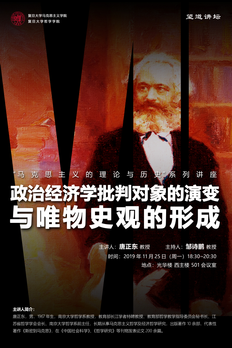 “望道讲坛”暨“马克思主义的理论与历史”系列讲座(七):政治经济学批判对象的演变与唯物史观的形成